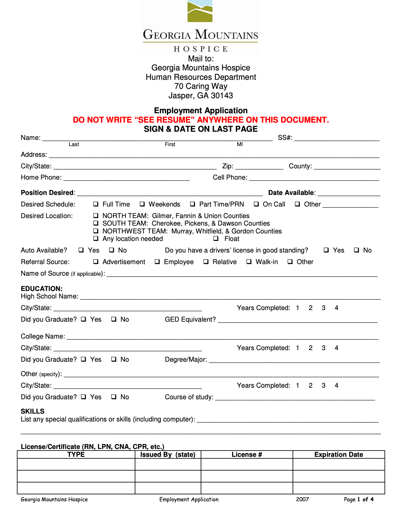 and drop it off during business hours at 1 Caring Way, Jasper, GA 30143 or mail it, or email to: gpendley200@ellijay.com